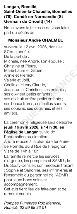 Cimetière de Langan le jeudi 16 avril à 15 heures 30